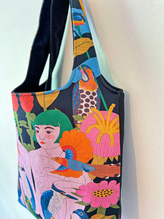 Bolso grande - Aves del Paraíso - Mujer y pájaro ardilla