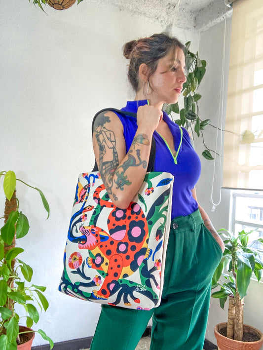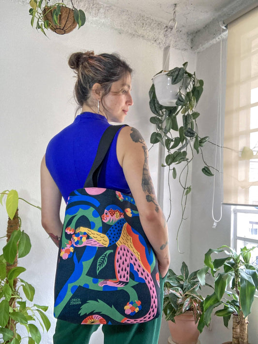 Bolso Mediano - Jaguar entre flores (fondo claro)