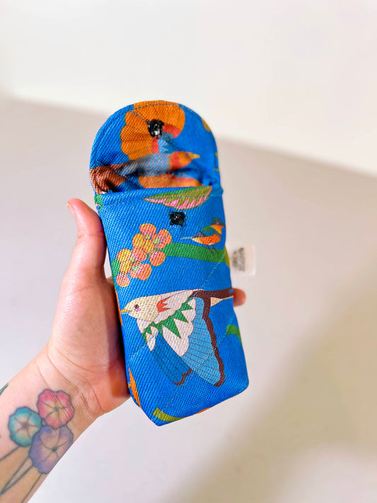 Estuche acolchado para lentes - Aves del Paraíso - Fondo celeste