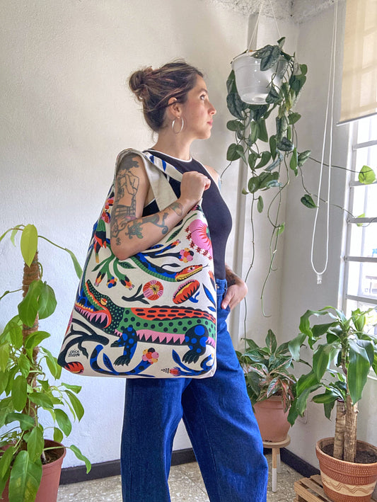 Bolso grande - Cocodrilo y Culebra fondo claro