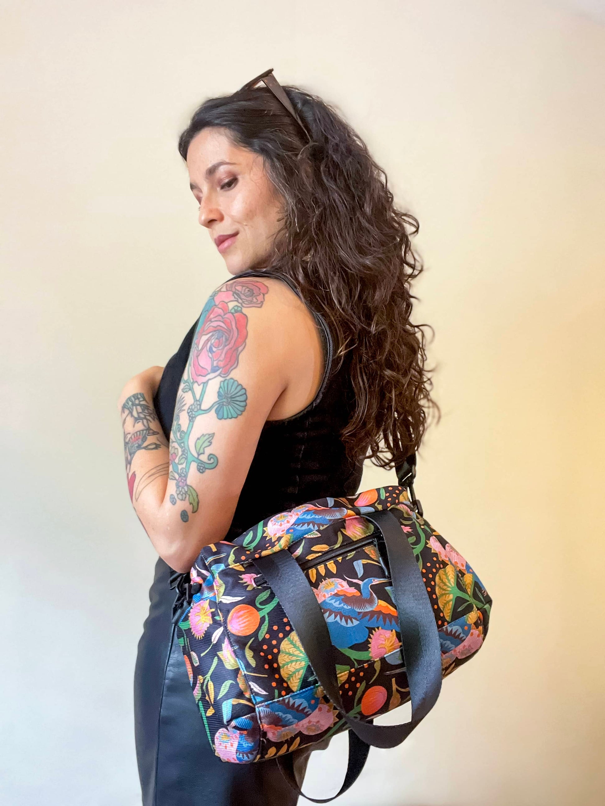 Bolso cruzado - Aves del Paraíso - Fondo negro