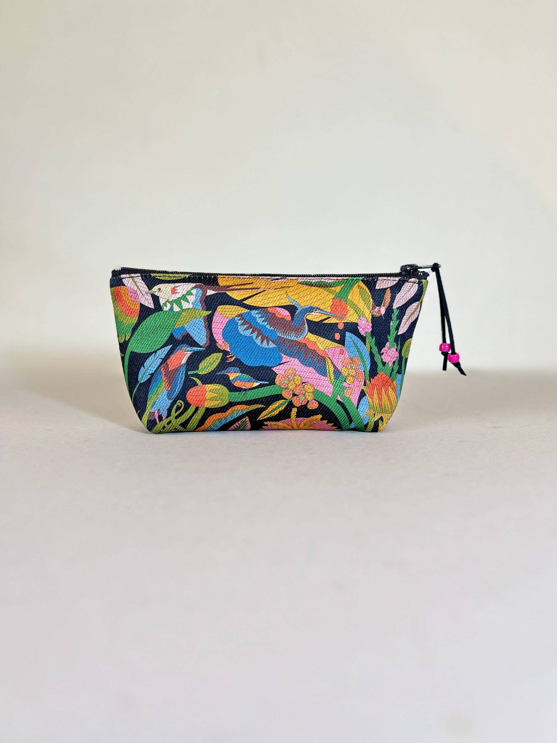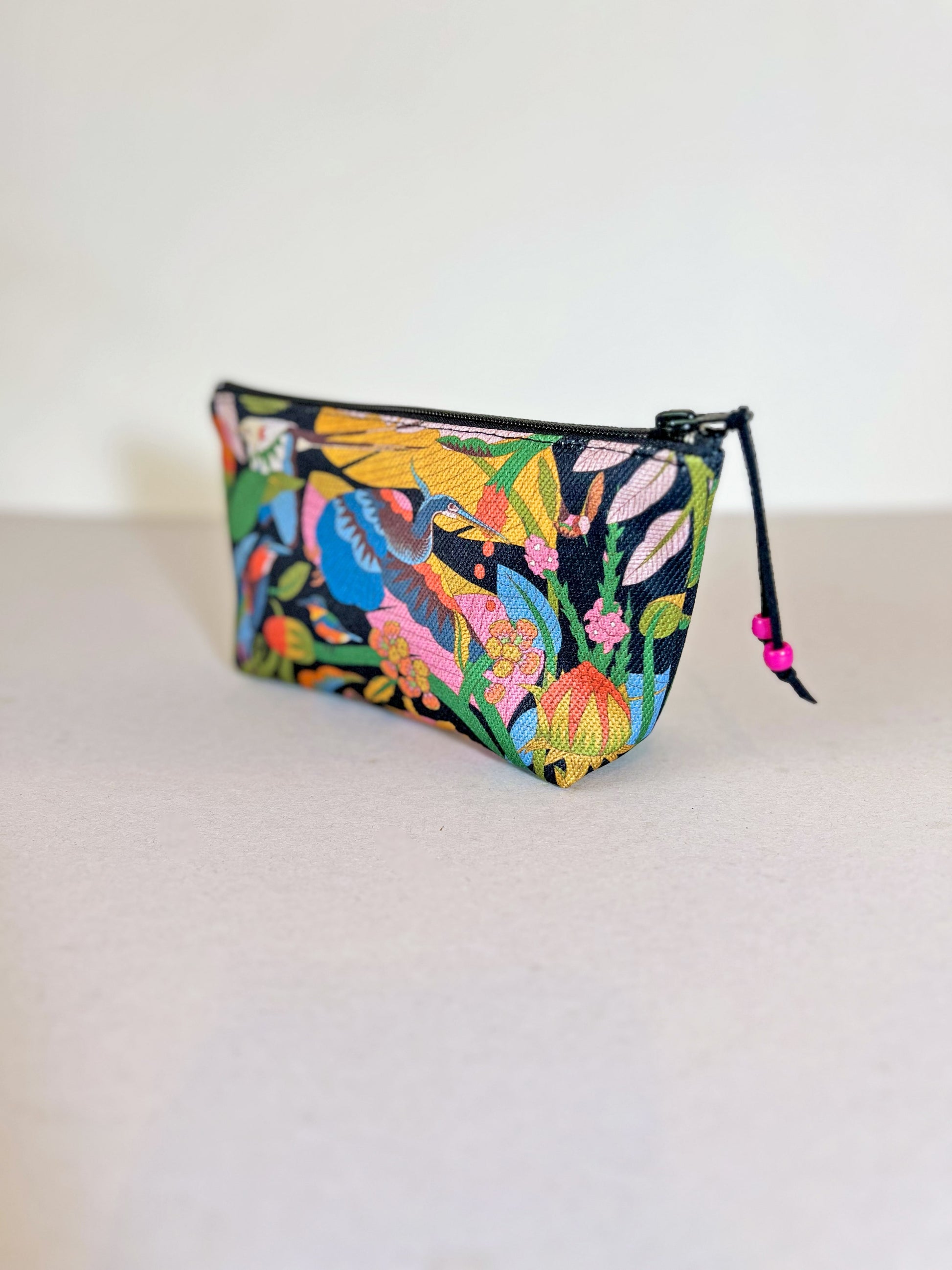 Esta cosmetiquera de la colección Aves del Paraíso con una ilustración que muestra el color vibrante y tropical que representa a la biodiversidad de Costa Rica, es perfecta por su tamaño para llevar los esenciales a cualquier lugar, confeccionada con un material resistente y duradero.