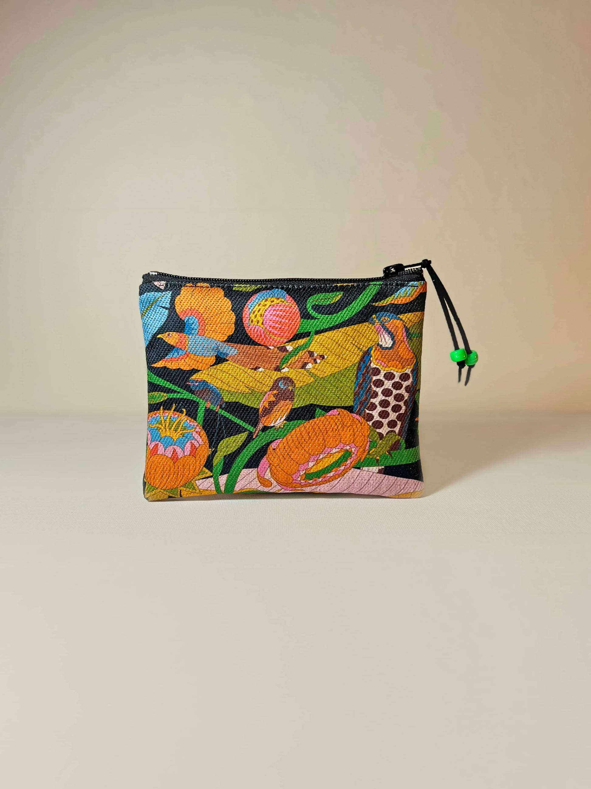 Este hermoso monedero, parte de la colección Aves del Paraíso, es mucho más que un simple accesorio: es una pequeña muestra de la vibrante esencia de la naturaleza en tu día a día. Con un tamaño compacto, es perfecto para guardar tus monedas, billetes, tarjetas, audífonos o cualquier pequeño tesoro que necesites llevar con vos. El cierre de zipper asegura tus pertenencias, mientras que su confección y material resistente garantiza durabilidad.